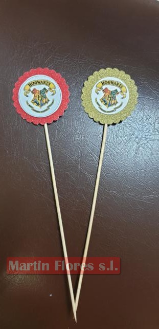 Brocheta decoración 6u fiesta Harry Potter Decoración temática para una fiesta especial.El paquete incluye 6u 😉 Como son artesanales, cada vez que nos los mandan son diferentes, pueden variar los colores o los diseños. Perfecta para utilizarlos para hacer pinchos de golosinas o decorar tu mesa dulce o centros de mesa. Consulte disponibilidad
