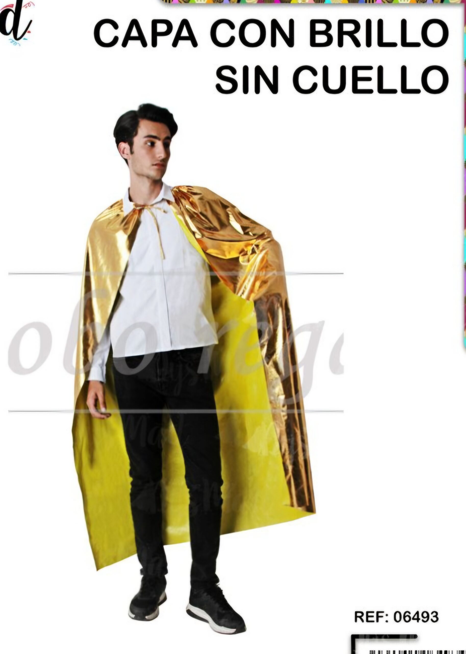 1u Capa dorada 1.30 metro poliéster SIN capucha. Complemento perfecto para tu fiesta,¡ haz volar la imaginación de los invitados! Consulte la disponibilidad