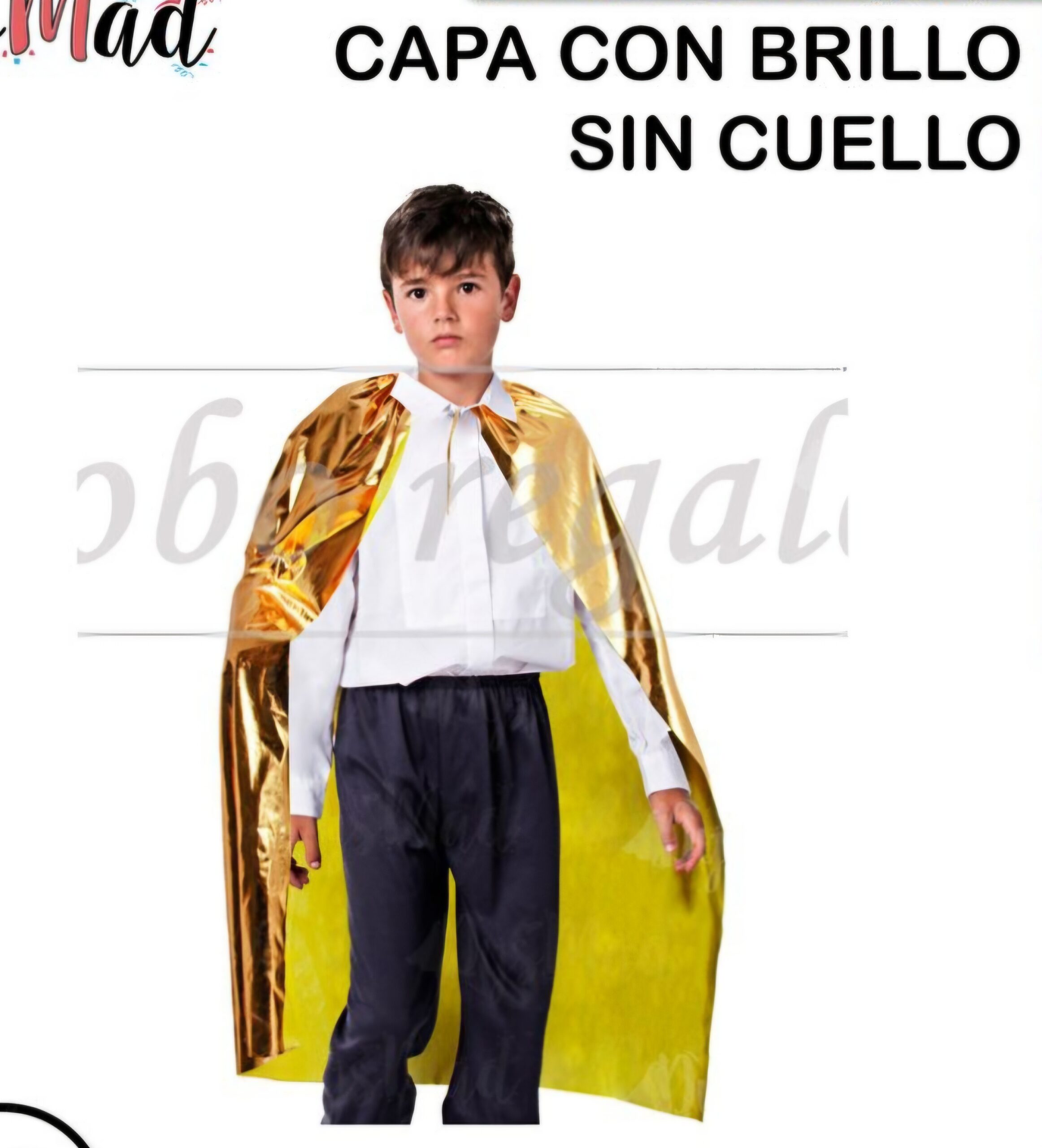 1u Capa dorada infantil poliéster SIN capucha. Complemento perfecto para tu fiesta,¡ haz volar la imaginación de los invitados! Consulte la disponibilidad