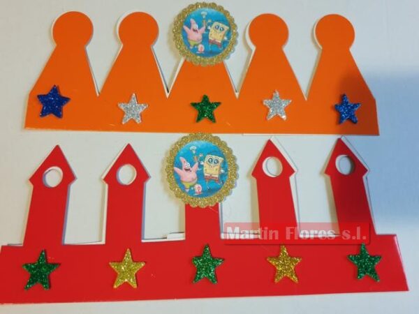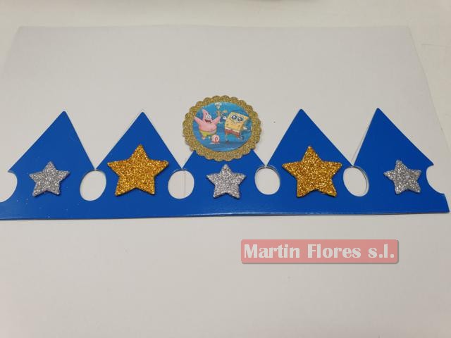 Es de cartón y talla única, aunque trae varias ranuras para adaptarla a diferentes tallas.La Corona cumpleaños Bob Esponja es un detalle que siempre gusta.