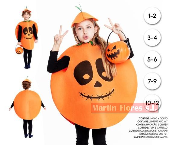 Disfraz calabaza fieltro para bebé disponible en las tallas 1-2 años y 3-4 años.