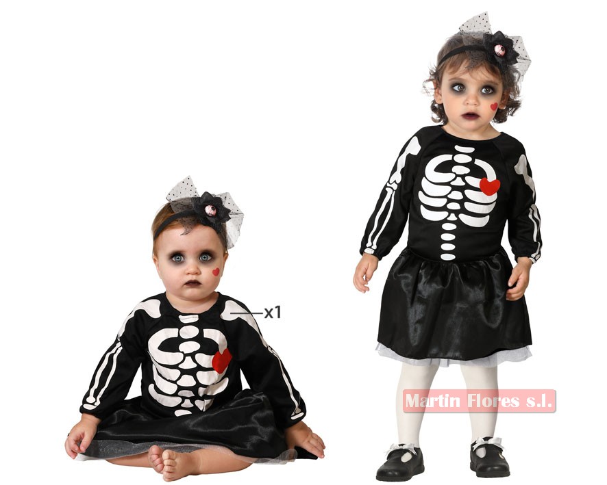 Disfraz esqueleto bebé niña disponible en las tallas 1-2 años